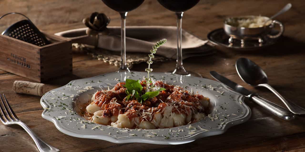 No caso de optar por massas, uma boa sugestão é o Nhoque de Batatas, com molho de tomates frescos, manjericão e azeitonas pretas ou o levíssimo Capelletti in Brodo.