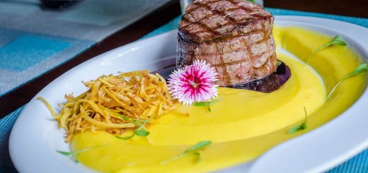 No principal, prove o generoso Aos 5 Mares: mix de polvo, lula, peixe, camarão e lagosta, em molho de coco, queijo gratinado e farofa crocante,  que serve tranquilamente a três pessoas. Vale conferir também, o Risoto de Polvo.