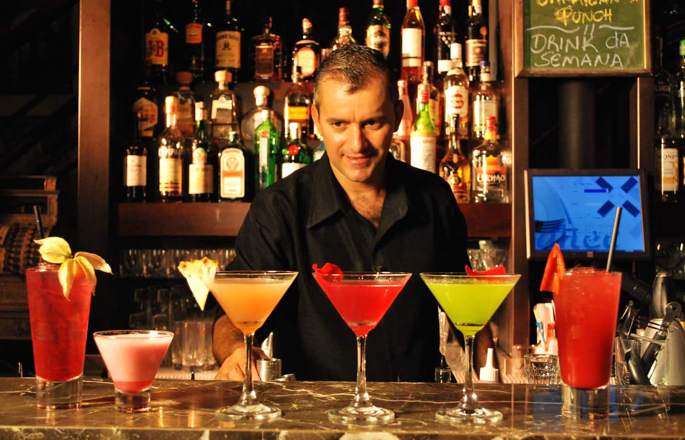 O BARTENDER AGUINALDO DORNELAS NO PREPARO DOS DRINKS
